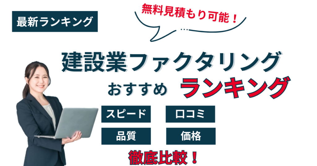 医療ビジネスをしていてどのファクタリングサービスを利用しようか考えている人もいるのではないでしょうか。診療報酬ファクタリングは利用する前に評判や口コミだけで... ファクタリング建設業に強いおすすめのファクタリング会社を厳選!【審査甘い、手数料安い】を徹底比較!