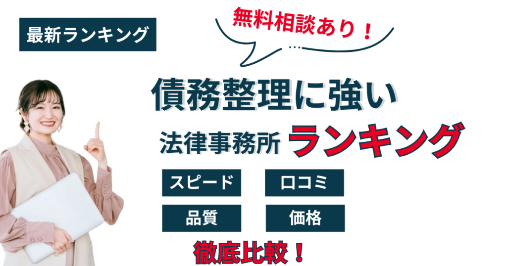 債務整理に強い法律事務所を探す上で、どの事務所が自分にとって合っているのかを調べるのは重要です。本記事では債務整理に強いおすすめの法律事務所をそれぞれの事務... -