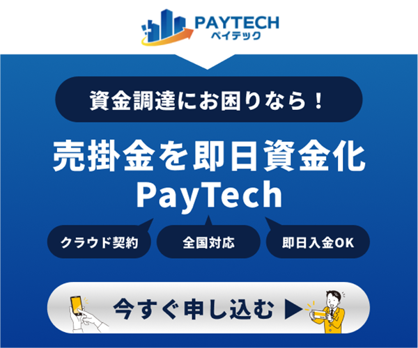 PayTech(ペイテック)は売掛債権を保有している法人・個人事業主様向けに、最短即日で資金調達が可能なファクタリングサービスです。